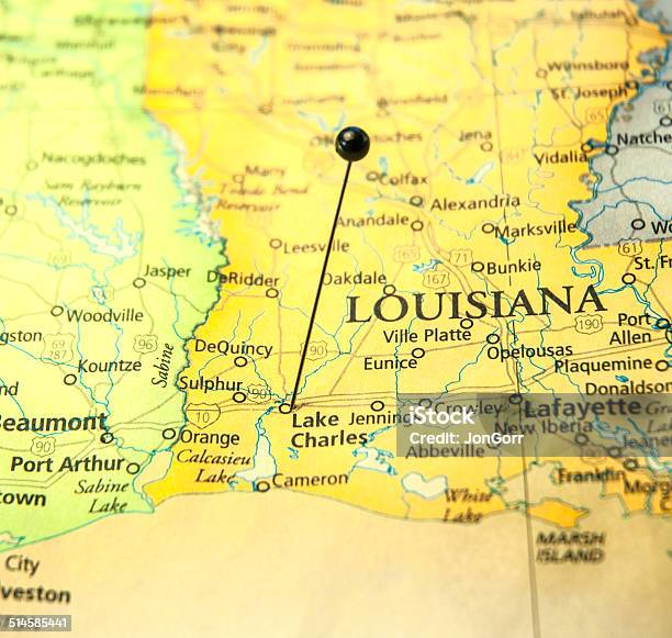 Macro Travel Road Map Of Lake Charles Louisiana Stock Photo